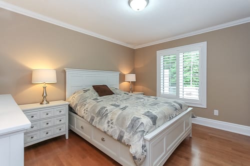 Beautifully appointed brick bungalow in Adult-Community known as Country Meadows on premium lot (backing onto acres & acres of private forest). Relax and retire in comfort. No stairs anywhere – even at the front door! This 1200 square foot, all-brick Yorkshire Model offers 2 bedrooms & 2 bathrooms, plus grage with inside entrance, an open-concept design & vaulted ceilings in main living/dining areas (with gas fireplace). This home is immaculate, shows well with neutral colours & has many upgrades including gorgeous hardwood floors, beautiful Custom Kitchen cabinetry (including large centre island), pot lights & upgraded light fixtures, 6 appliances, gas fireplace, Hunter Douglas blinds & California shutters plus extensive use of crown moulding. Modern conveniences include natural gas heat, central air conditioning, paved driveway, water & sewer. Stunning setting with 10′ x 27′ sundeck overlooking nothing but privacy! Country Meadows boasts a 9-hole golf course, outdoor pool, recreation centre, pond and walking trails.
